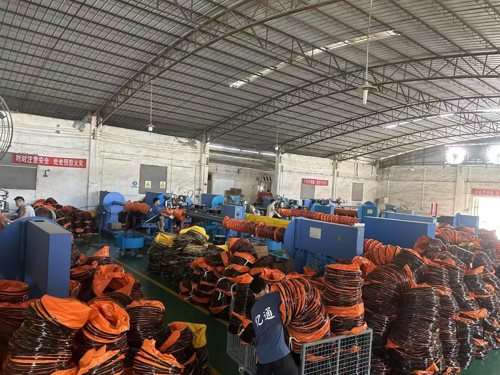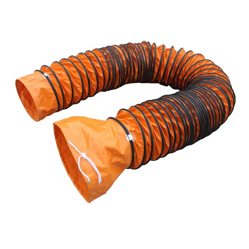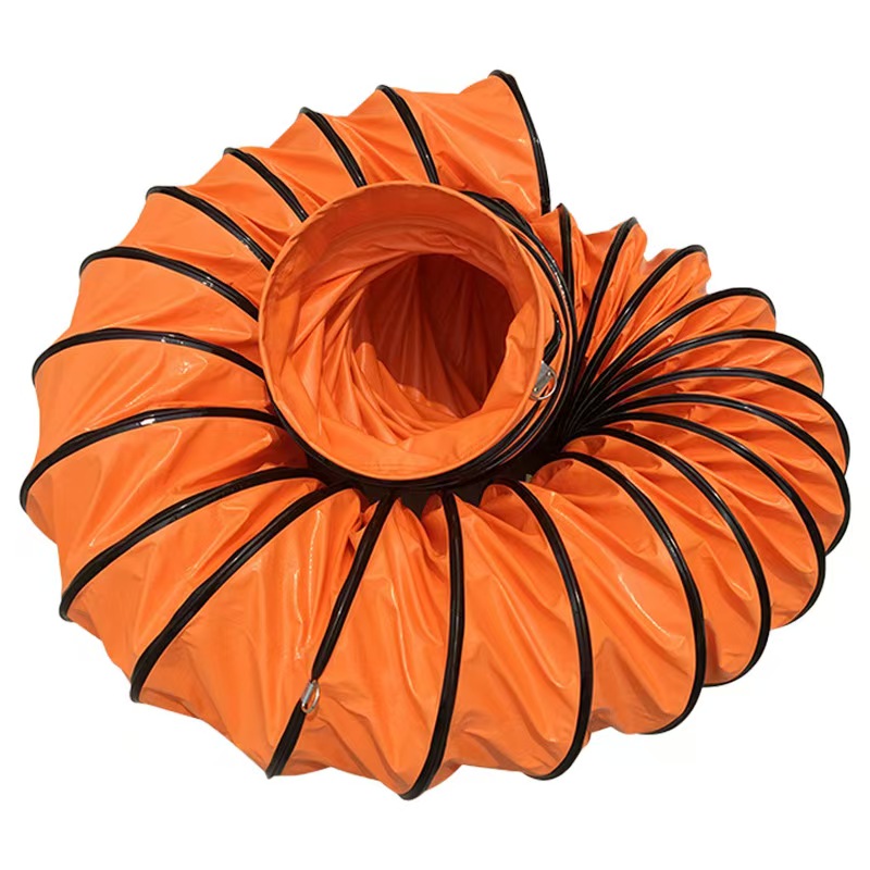 Structural Description: The outer fabric is PVC-coated mesh, available in orange, yellow, black, and blue-gray, with a black wear-resistant rubber strip wrapping the carbon steel wire support tube.